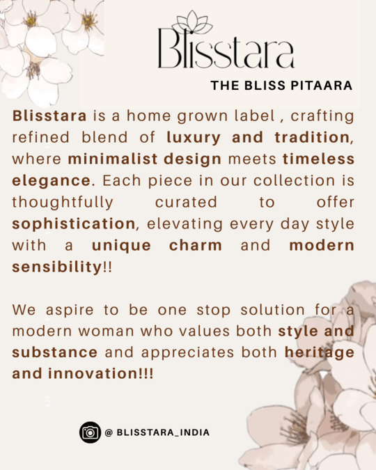 Label Blisstara elevates your style with a unique charm and modern sensibility. Step out in style and get ready to receive compliments on your impeccable taste.