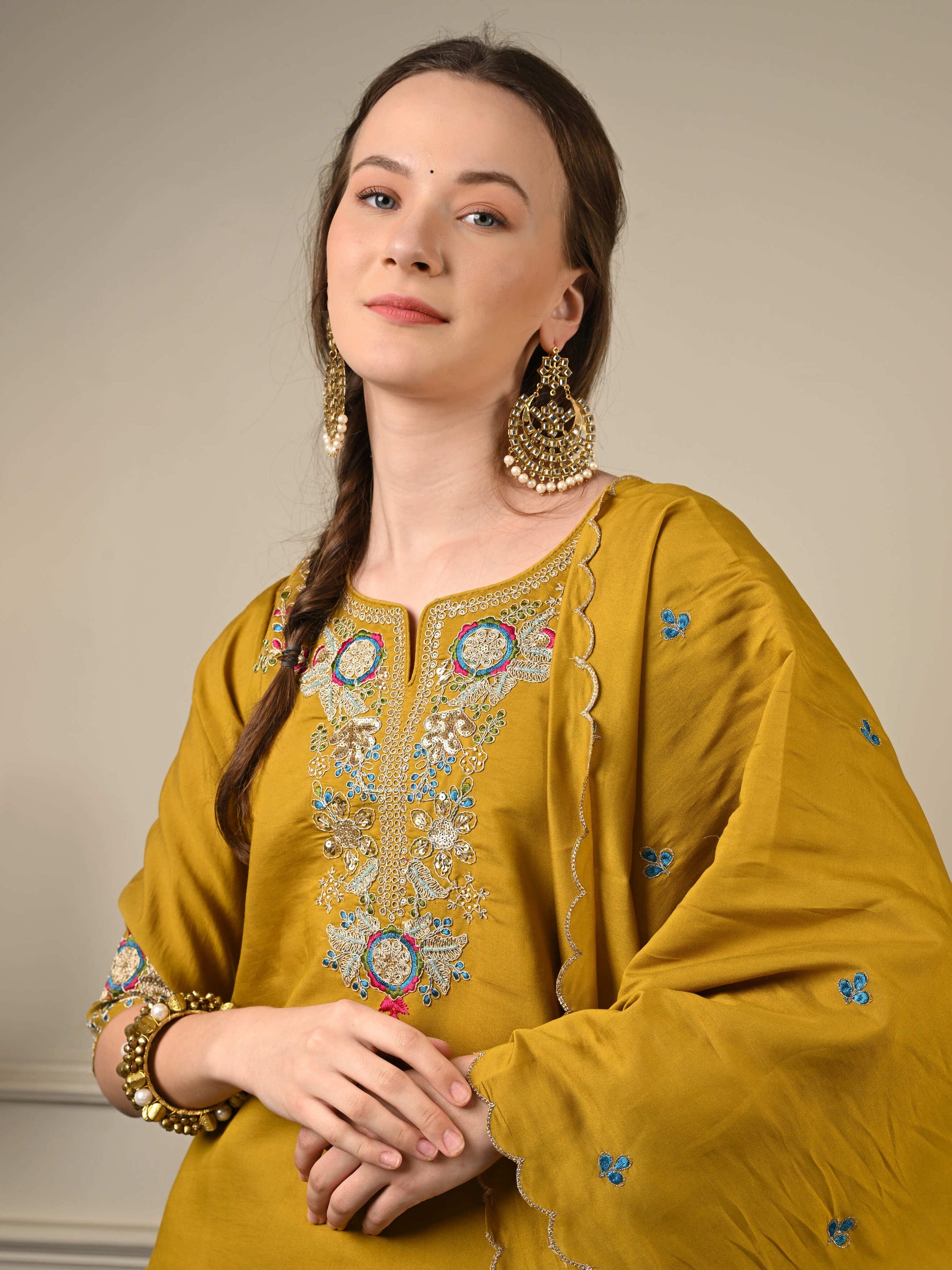 Mustard Yellow Rayon Silk Suit Set with Dupatta