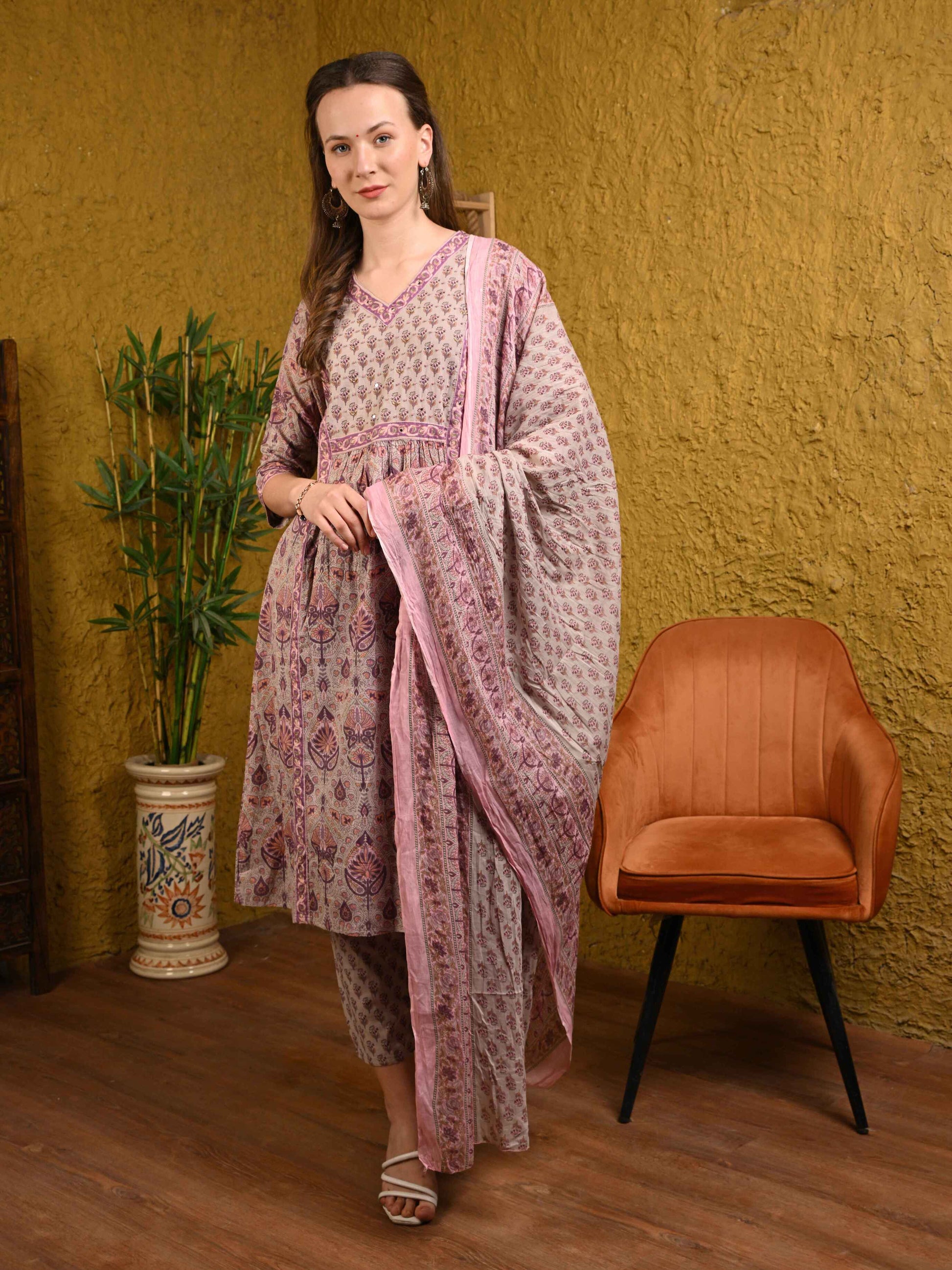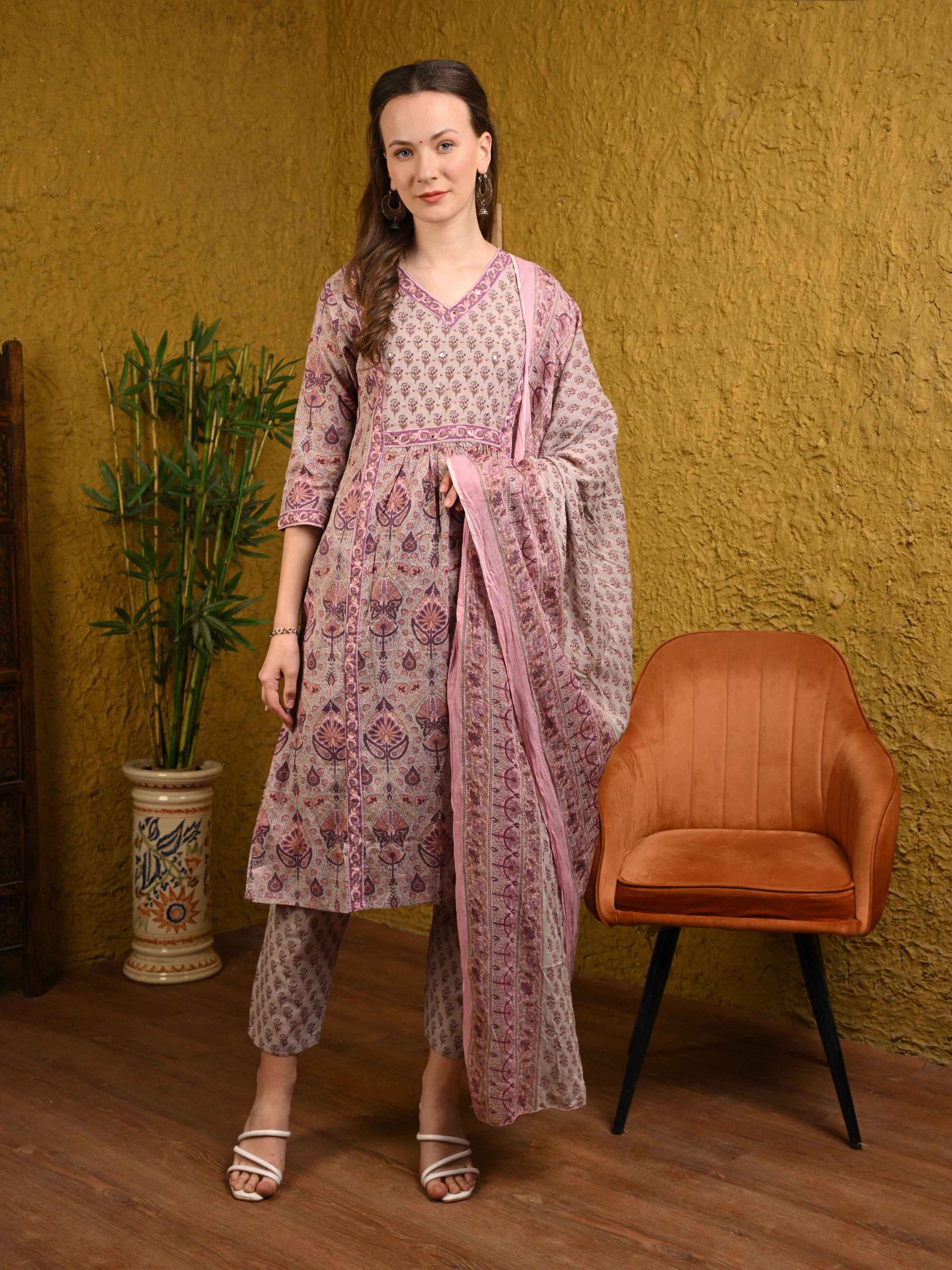 Onion Pink Jaipuri Printed Cotton Suit Set